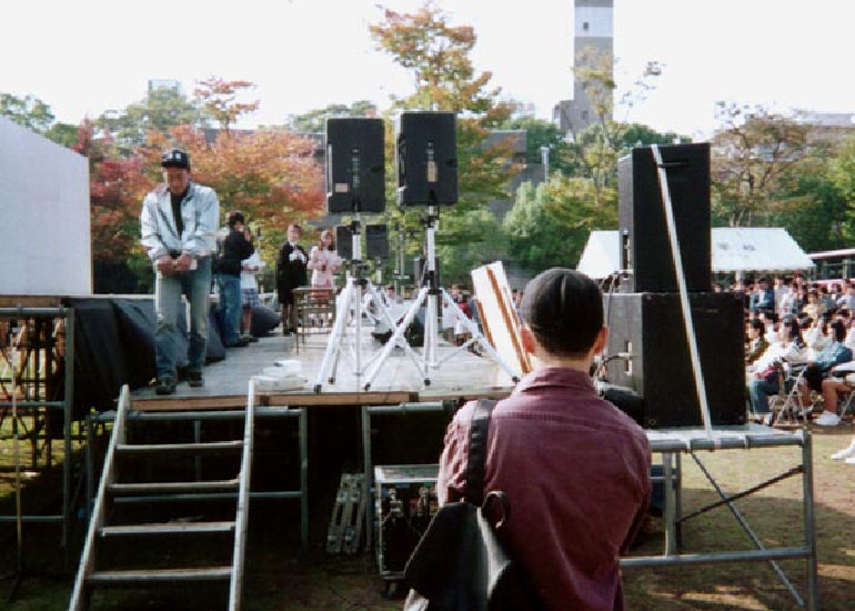 学祭屋外仮設ステージの変形ステージと音響を担当しました